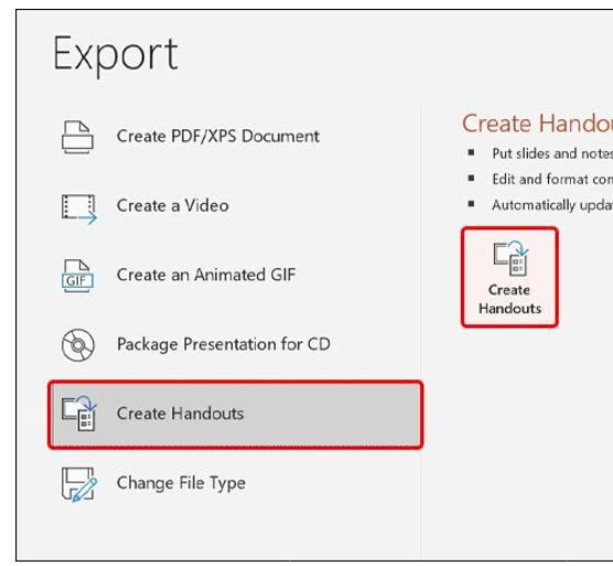 Nhấn vào Create Handouts → Chọn Create Handouts.