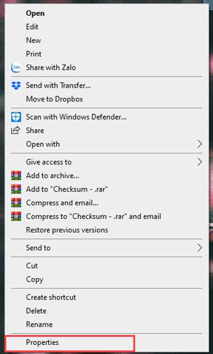 Các bạn Click chuột phải vào file Word trên máy tính và chọn Properties.