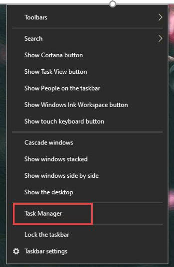 Đầu tiên, các bạn Click chuột phải vào thanh Taskbar và chọn Task Manager.